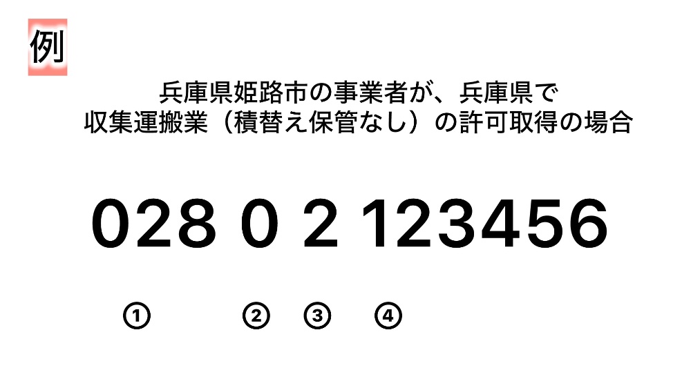 この番号は許可権者が自由に使える番号で、兵庫県の場合、事業者の所在地を示しています。